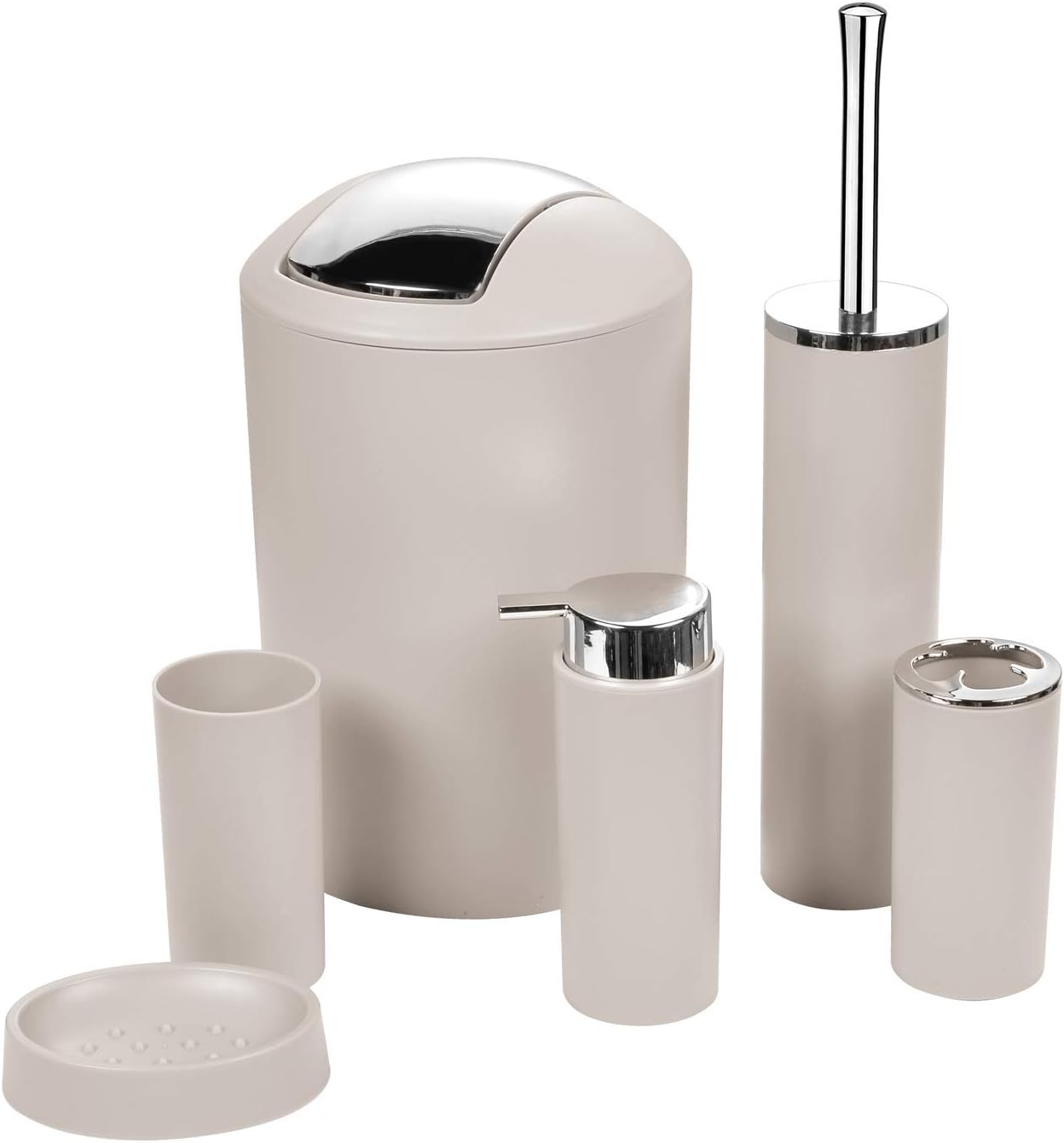 Bathroom Accessories Set 6 Piece Beige Bin, Brush, Dispenser & Holders