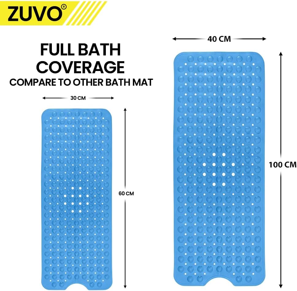 Zuvo Extra Long Non-Slip Bath Mat 100x40cm, Blue