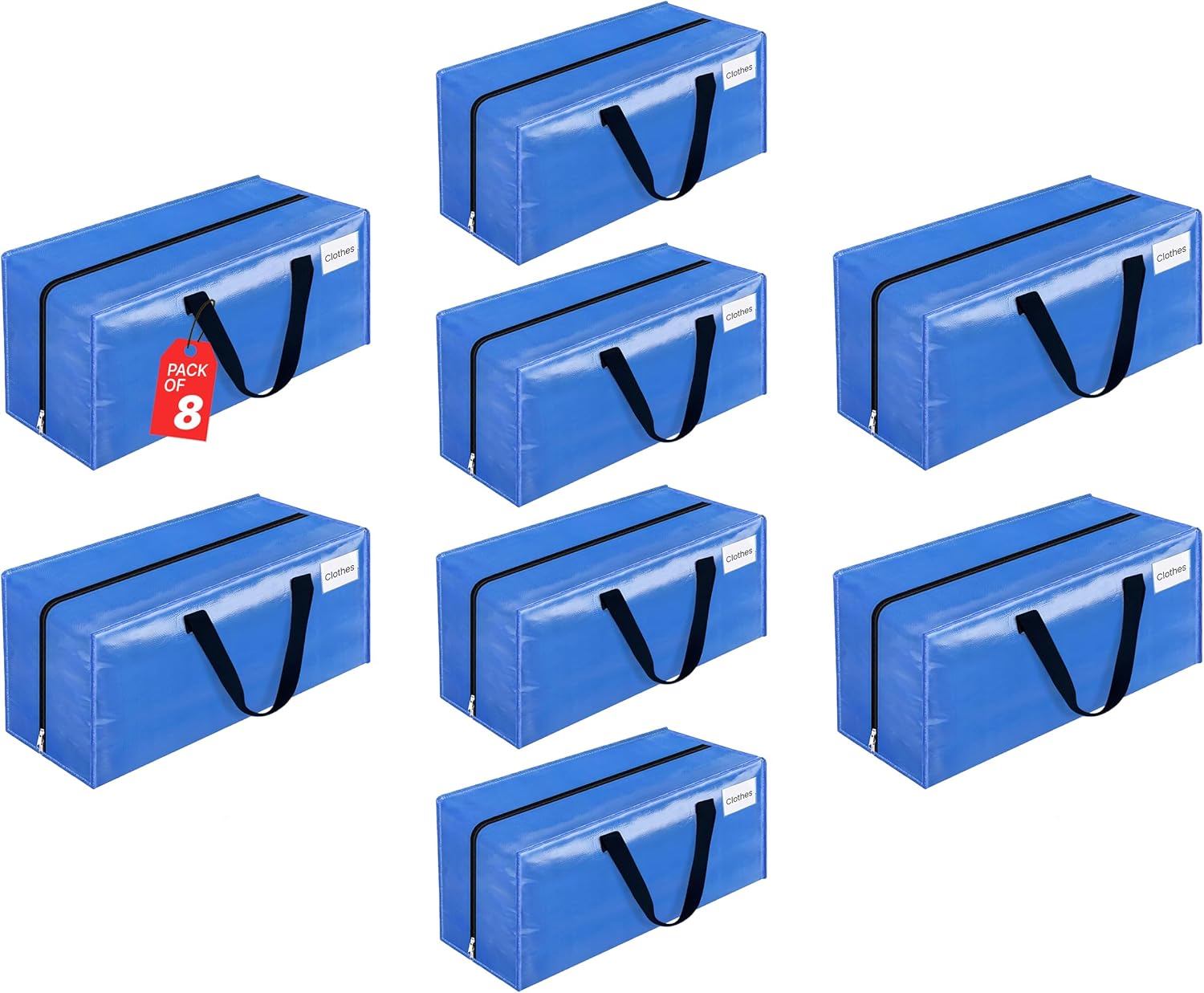 Zuvo Extra Large Moving & Storage Bags 8 Pack Waterproof with Zips 73x36x36