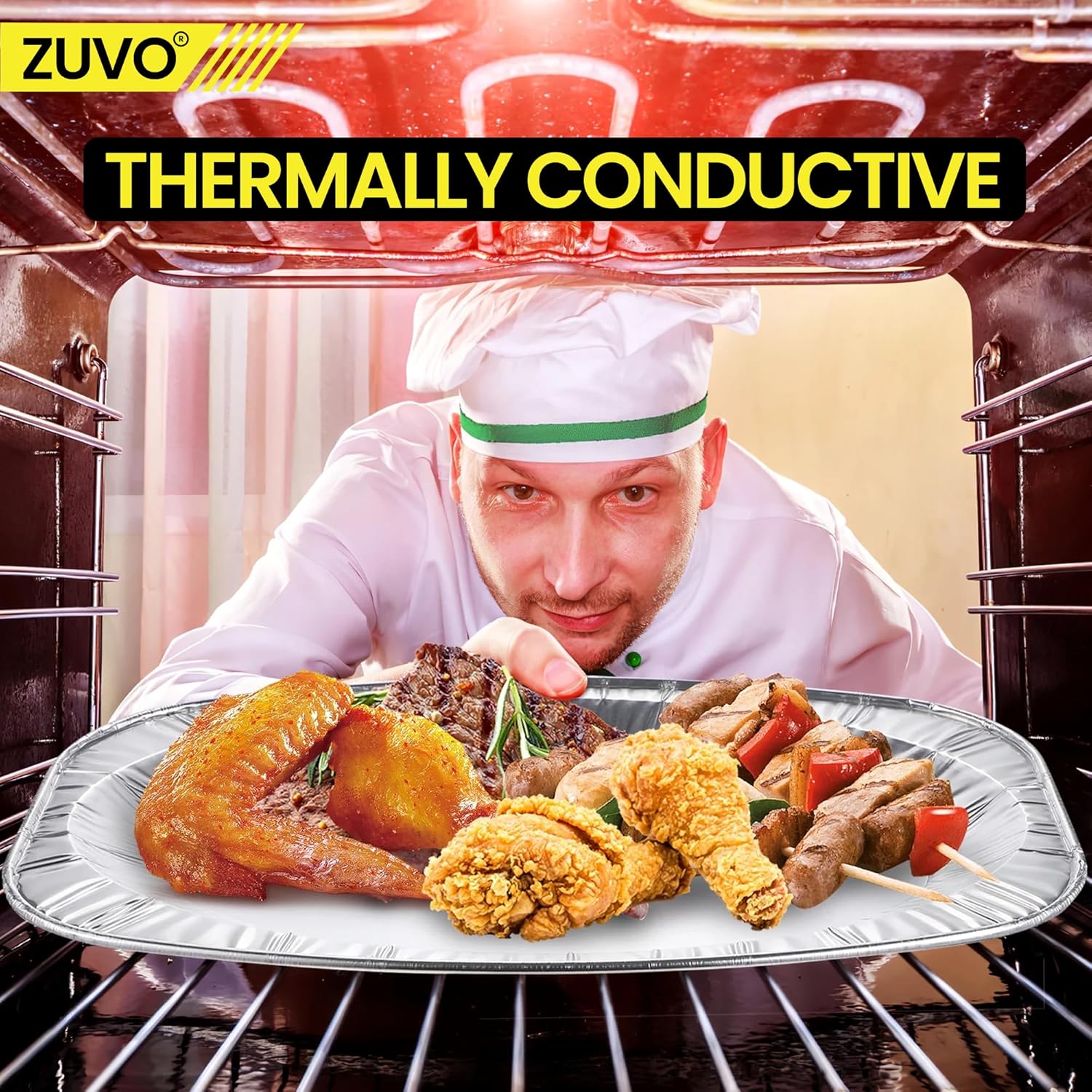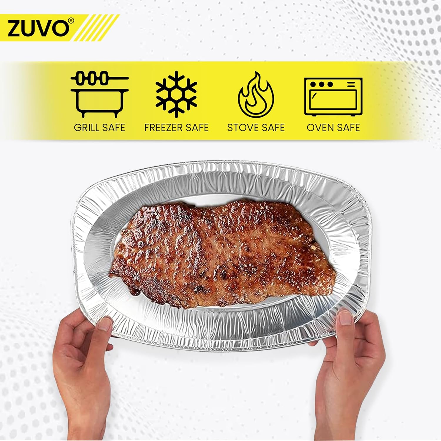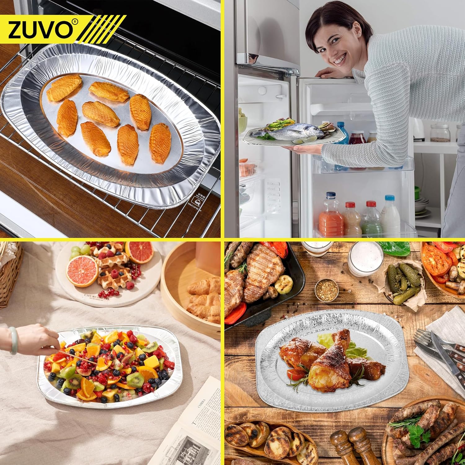 Effortlessly serve and impress your guests with this pack of 10 large aluminium foil serving platters from Zuvo. These durable trays are oven and freezer safe, making them perfect for all your party food needs. Measuring at 35x23cm, they are the ideal size for any buffet. Elevate your party game with Zuvo.