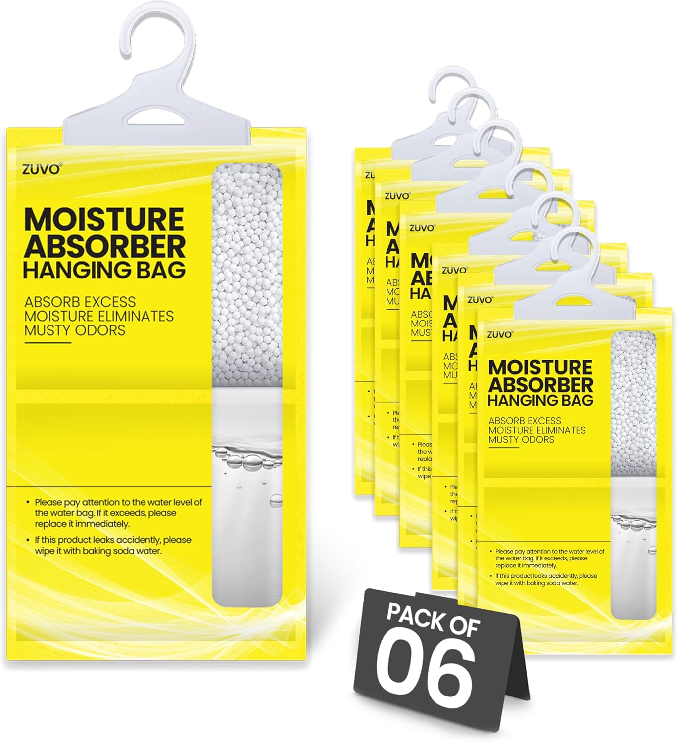 Zuvo Wardrobe Dehumidifier Hanging Bags 6 Pack Moisture Absorber
