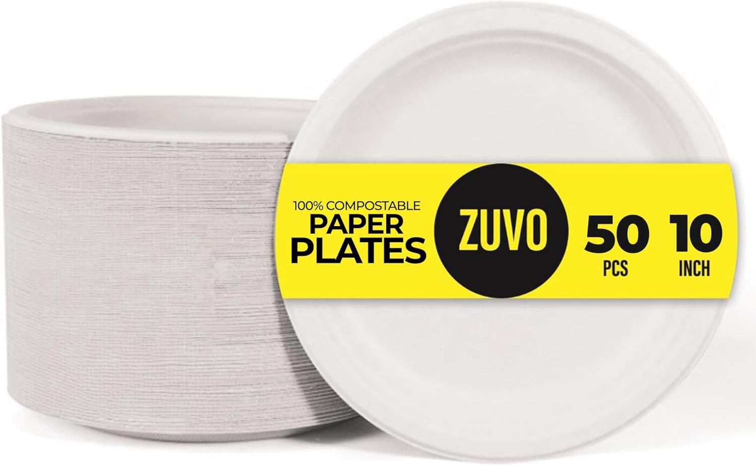 Zuvo 10" Compostable Paper Plates 50-Pack Eco-Friendly, White