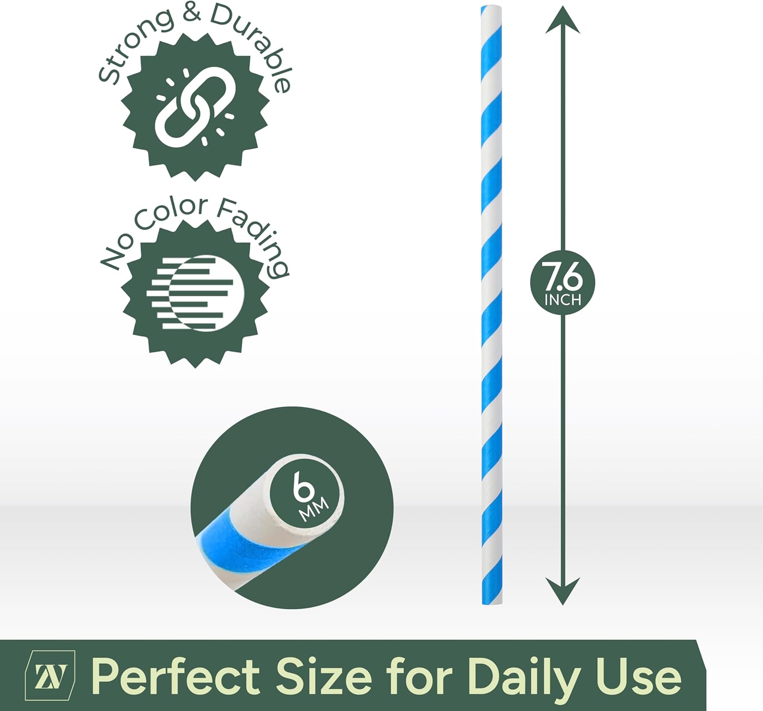 ZUVO 250 x Paper Drinking Straws 20cm | Biodegradable Eco-Friendly Party Pack