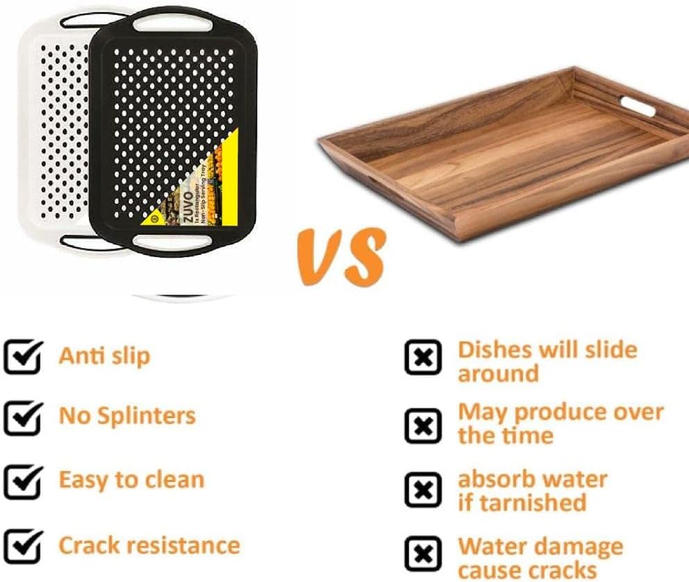 Zuvo Anti-Slip Serving Tray Set of 2 – BPA Free Plastic with Handles Black