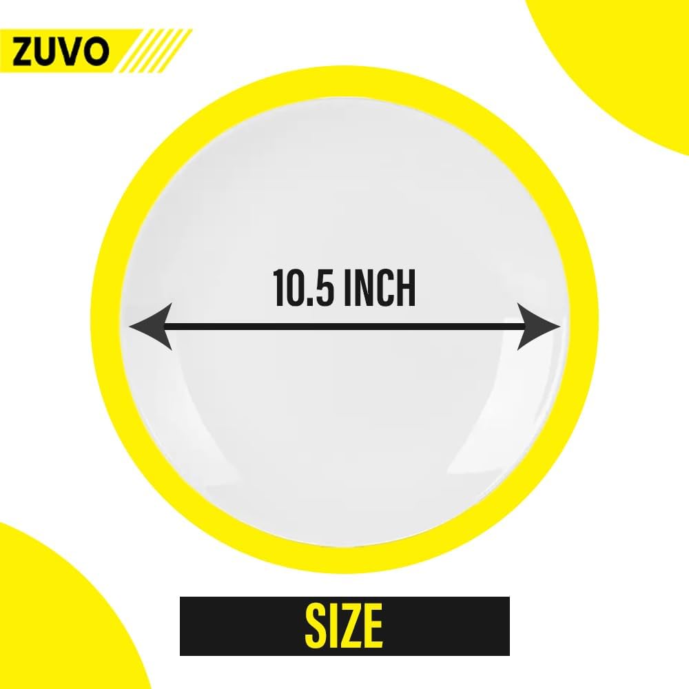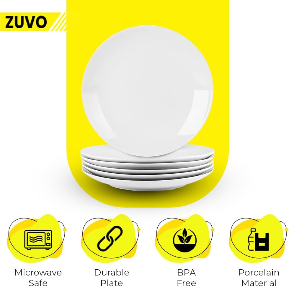 Zuvo White Porcelain Dinner Plates Set of 6 – 10.5 Inch Microwave Safe Coupe