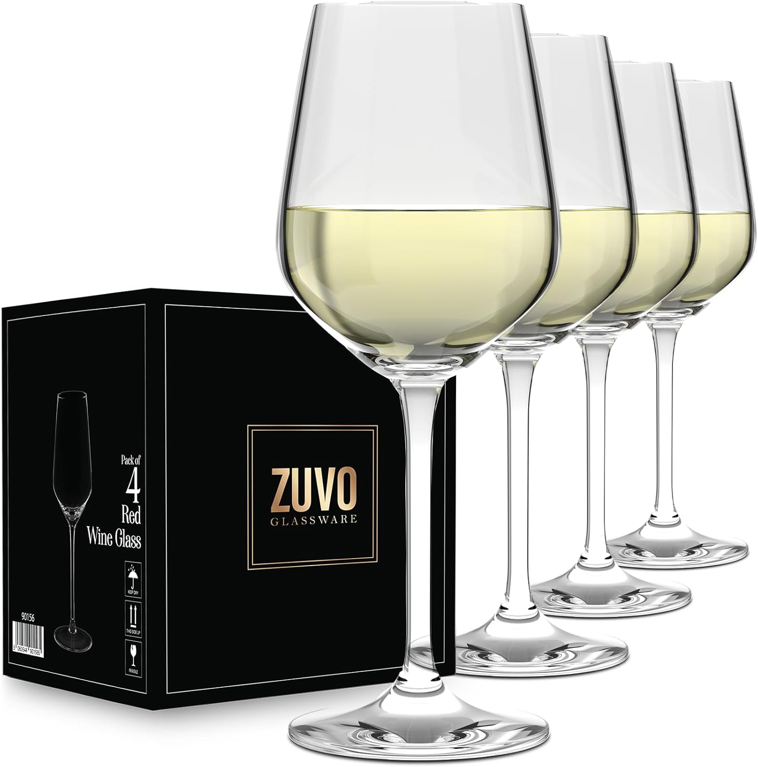 Zuvo White Wine Glasses Set of 4 380ml Clear Crystal Long Stem Glasses Dishwasher Safe for Home Use