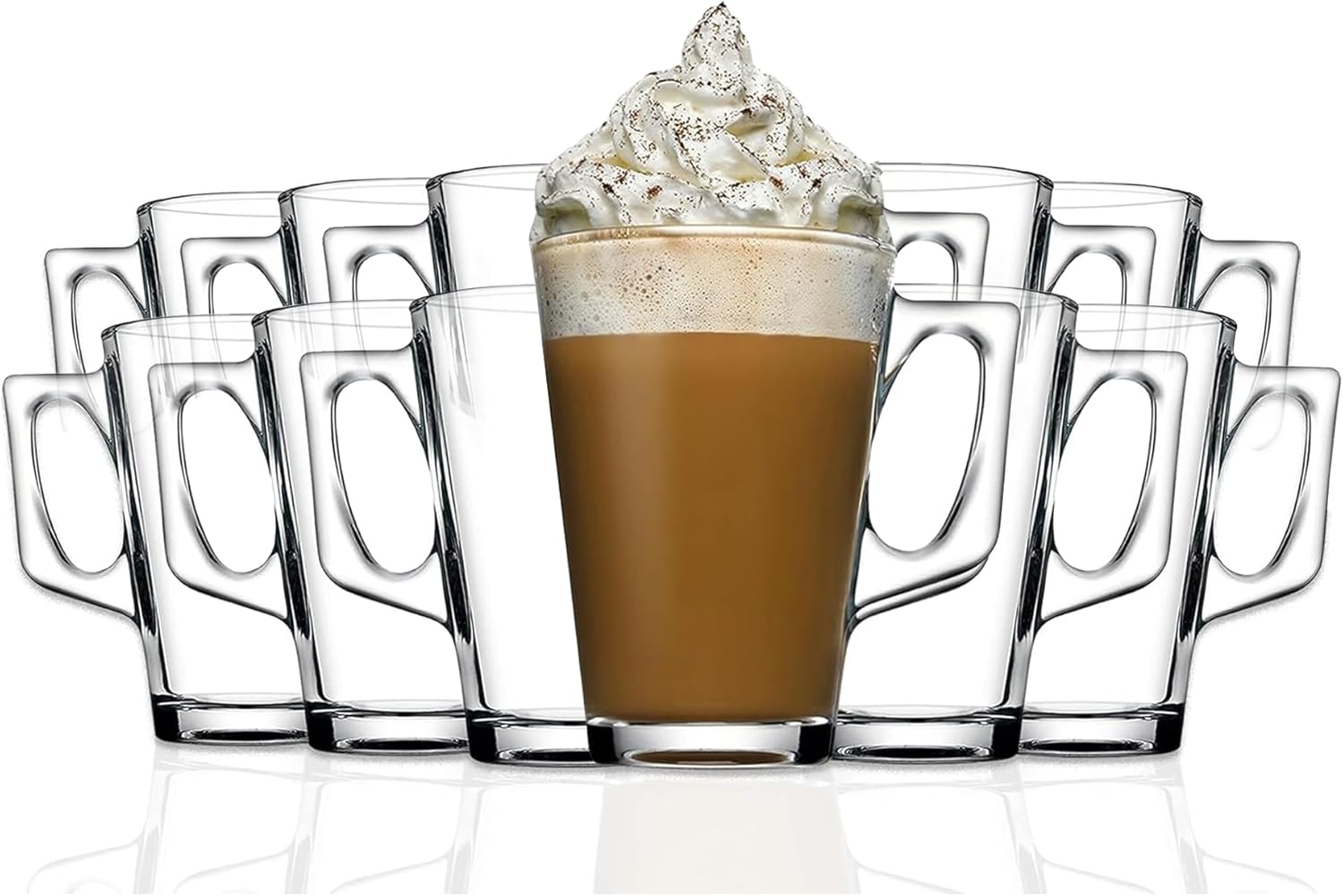 Zuvo Latte Glasses Set of 12 240ml Heat Resistant Glass Cups for Coffee Latte and Hot Chocolate