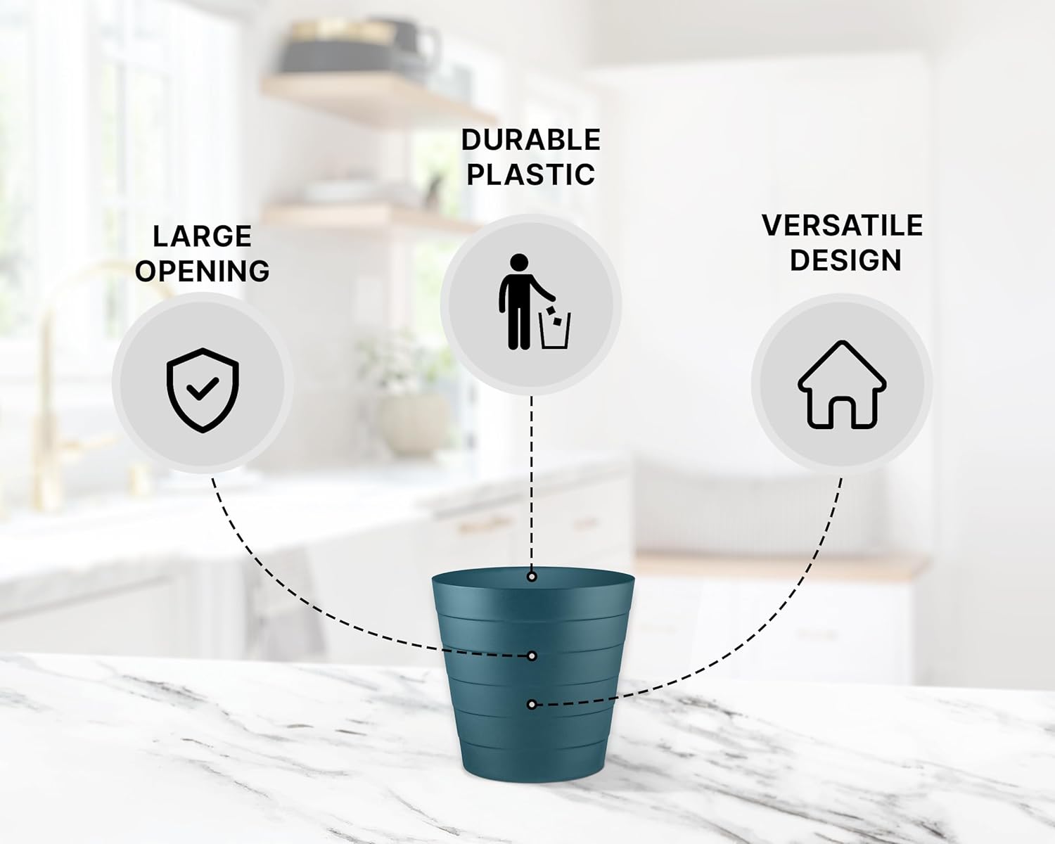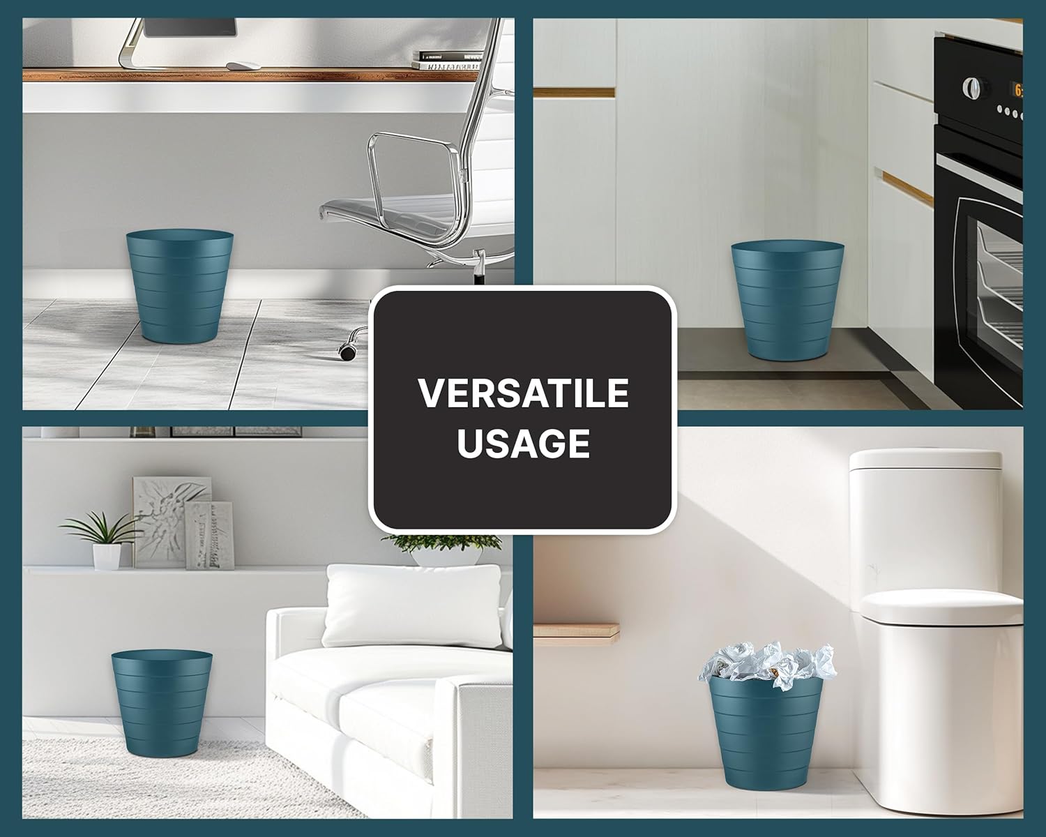 Zuvo Plastic Paper Bin 5L Shatter-Proof Wave Design, Navy Blue
