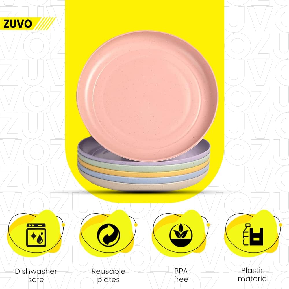 Zuvo Reusable Plastic Plates Set of 6 – 6 Inch Microwave & Dishwasher Safe