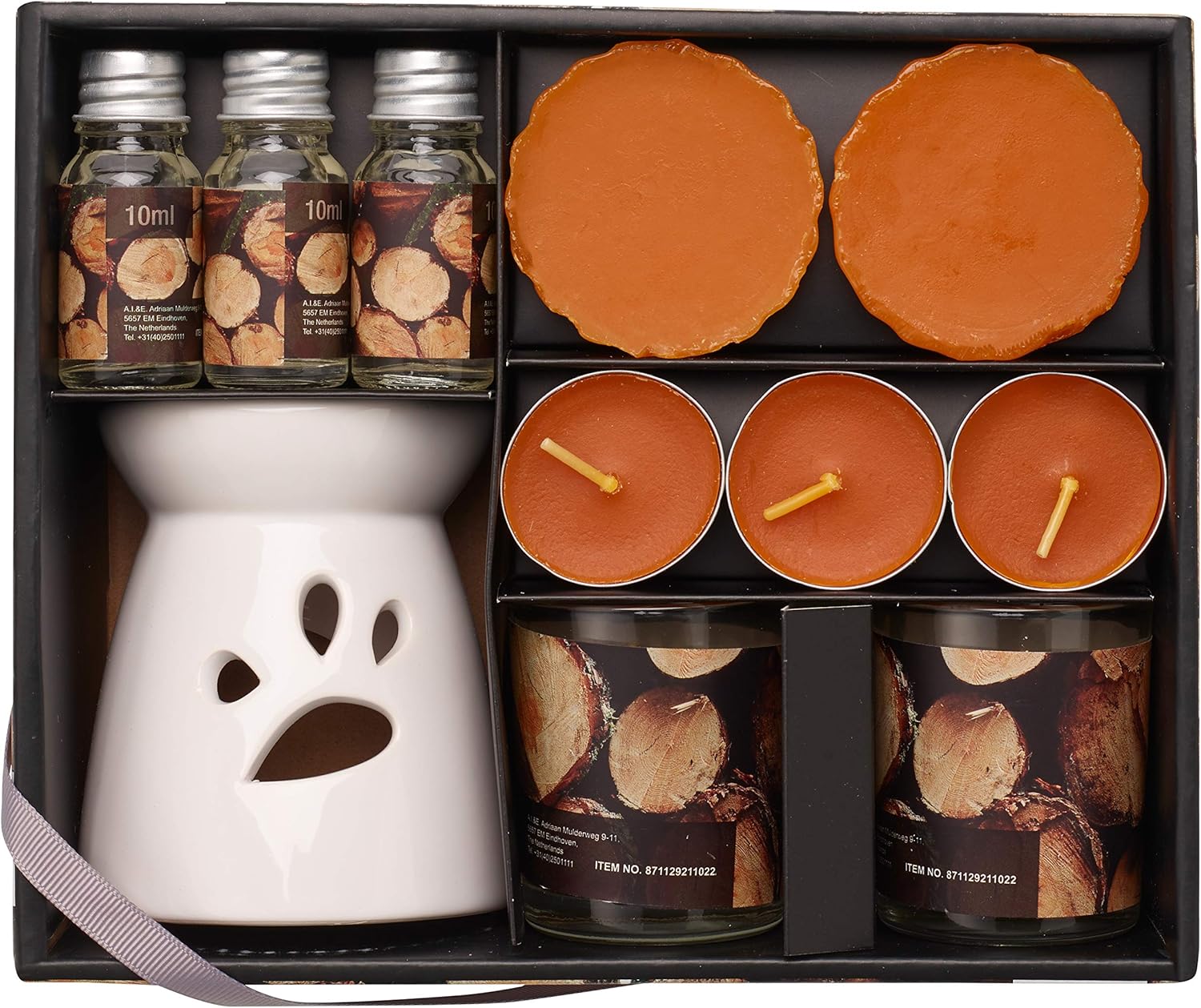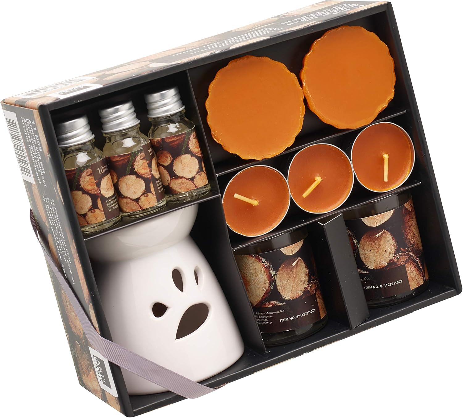 - 11 piece scented candle set with a warm woody fragrance