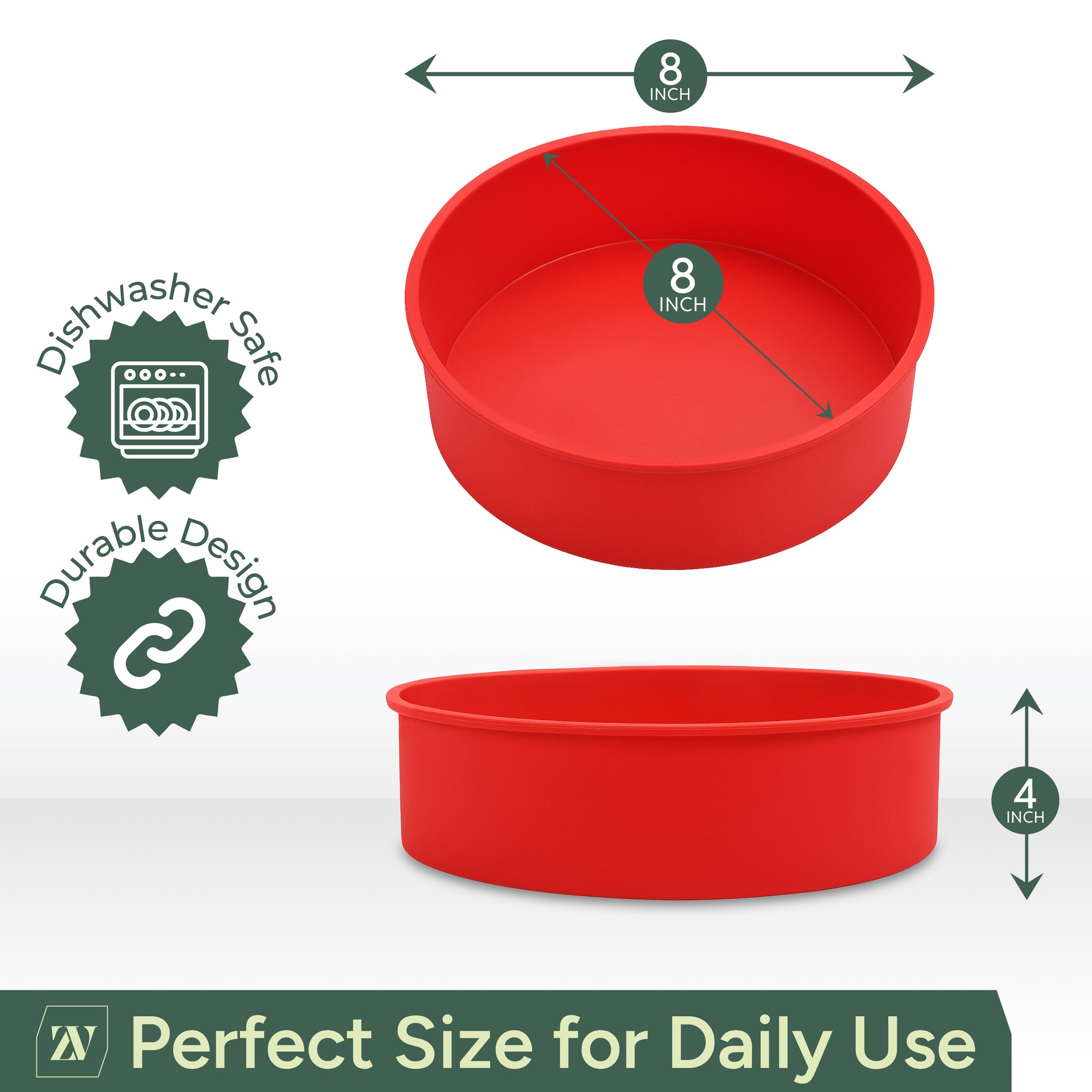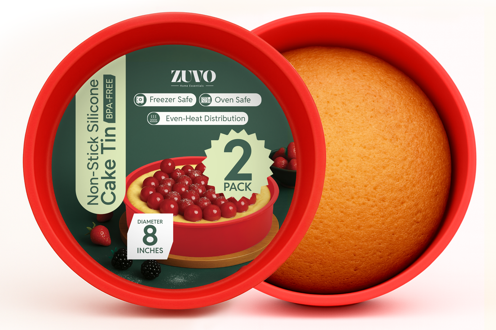 Zuvo - Silicone Cake Tins (2 Pack)– 8 Inch Round Cake Moulds for Baking, Non-Stick Pans for Layer Cakes, Cheesecake, Sponge, Bread & Desserts – Oven, Freezer & Dishwasher Safe