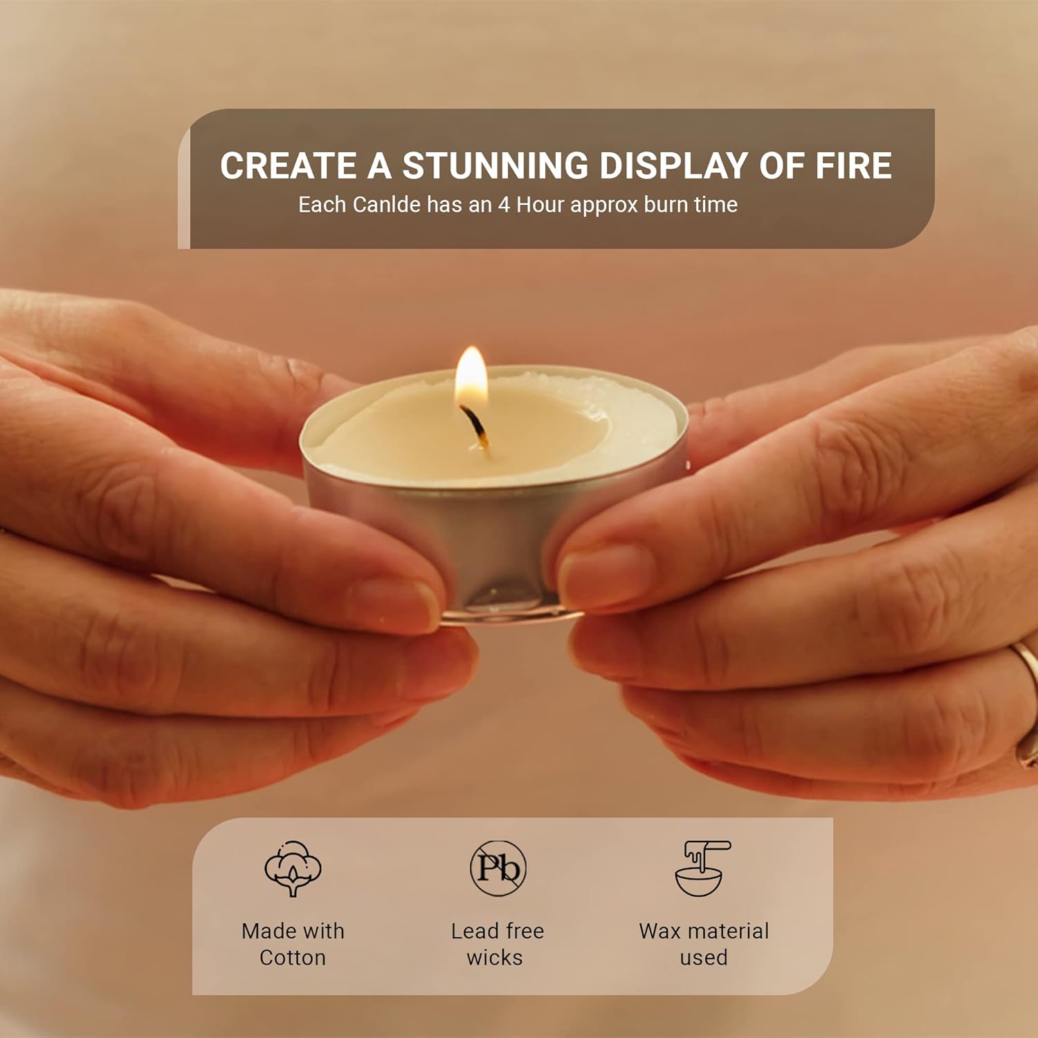 Zuvo Tea Light Candles 4 Hour Burn 50 Pack Unscented Smokeless Tealights
